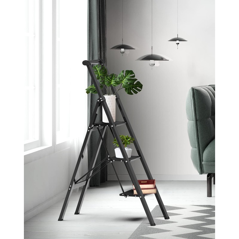 • Modern & Slim Design - This ultraslim stepladder is stylish design makes it more integrated with your home, and it also can be a decorative ladder, which can be used as a book shelf, flower shelf, photography use and etc.