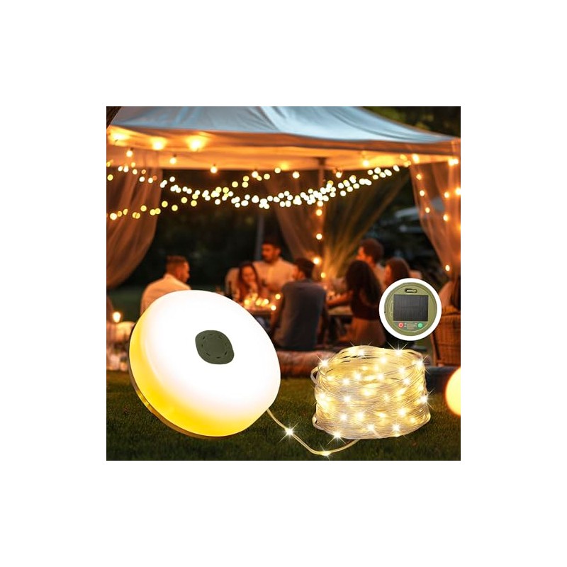 Solar Camping String Lights with 100 LEDs, 33 FT Outdoor Fairy String Lights with 13 Lighting Modes & Timer, Waterproof & Rechargeable, Camping Gear for Tent, Yard, Garden, Hiking, Travel Decor