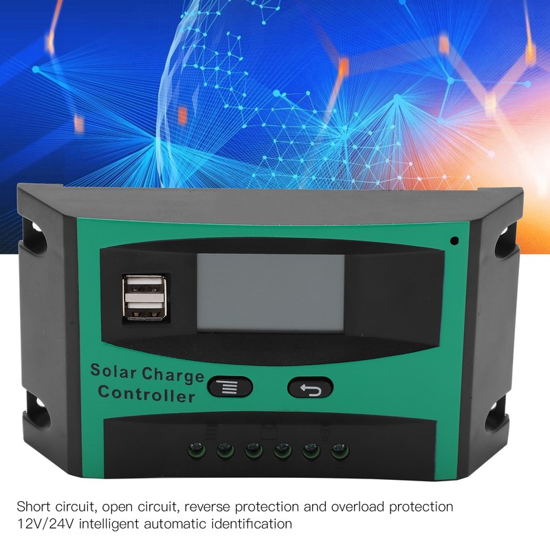 1、The solar controller, with a display screen, can clearly display the status and data. 2、Can switch mode and parameter configuration conveniently, suitable for home, industry, business, etc. 3、With short circuit protection, open circuit protection, reverse protection, and overload protection. 4、The rated discharge current is 10A, and it is automatically compatible with 12V or 24V systems. 5、Suitable for AGM, GEL batteries, etc., but not for Ni‑MH, Lithium, Lithium‑ion batteries or other batteries.