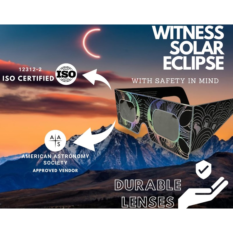 Solar Eclipse Glasses (2 pack) ISO 12312-2 Compliant, AAS Recognized, Safe Shades for Direct Sun Viewing of April 8, 2024 Total Solar Eclipse.