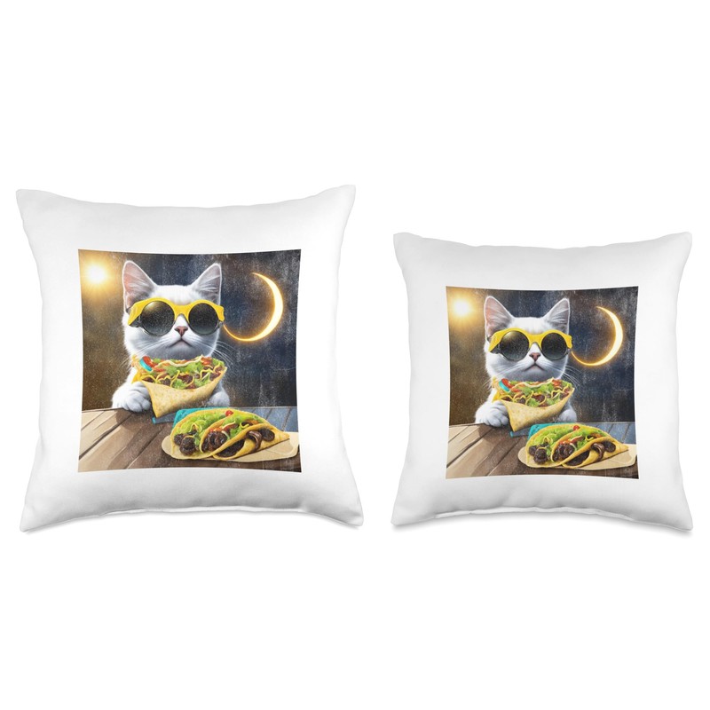 Solar Eclipse Taco Cat Throw Pillow