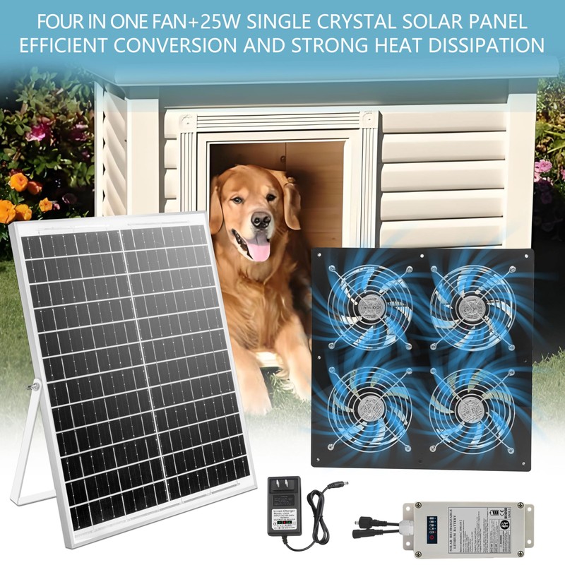 Solar Exhaust Fan with 12000mAh Battery,Solar Chicken Coop Powered Fan with 25W Solar Panel & 4 Pcs High-Speed Brushless DC Ventilation Fans for Greenhouses,Shed,Attics,Barns,Dog Houses & Windows