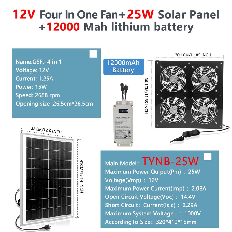 Size: | 25W 4 Solar Exhaust Fan with Battery |