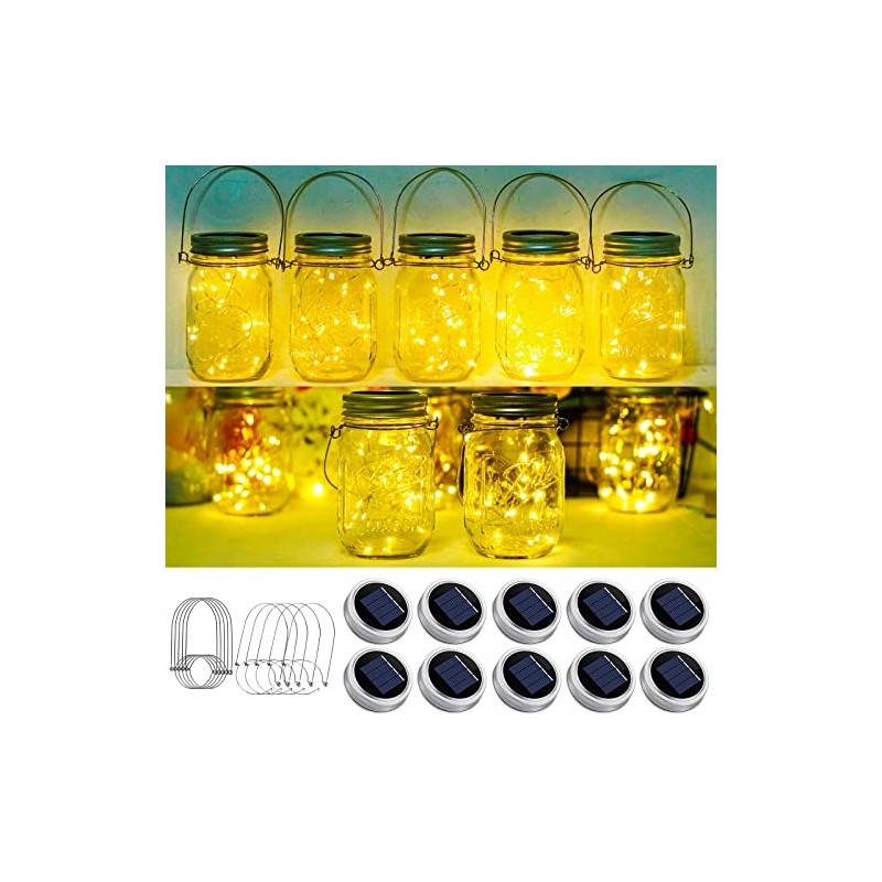 - 【Pack of 10 Lids/Hangers Kit】- What you get - Pack of 10 units of SmilingTown Mason Jar LED String Lights Lid and 10 Hangers. A Valuable 10 kit to order. LED lights can last 50,000hours under regular using. Important: JARS NOT INCLUDED.