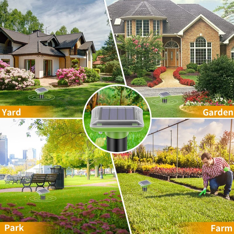 • No Hurm To Kids and Pets: Our ultrasonic solar-powered mole repellent emits a tone that only pests can hear and it is friendly and no hurm for plants, crops, people, and pets