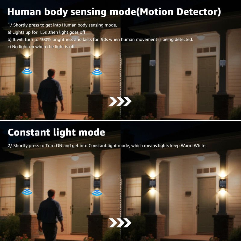 Solar Outdoor Lights Motion Sensor LED Powered Fence Lights, Warm White, IP65 for House Patio Backyard Pathway Deck (B)