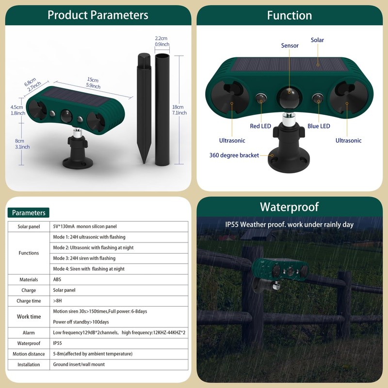 - Versatile - Ideal for homes, orchards, buildings, farms, warehouses and more to drive animals and other unwanted intruders from your garden
