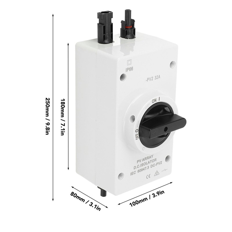 • [Efficient Module Shutdown] This dc isolator switch turns off all poles of solar modules, ensuring safety between the module and inverter or controller.
