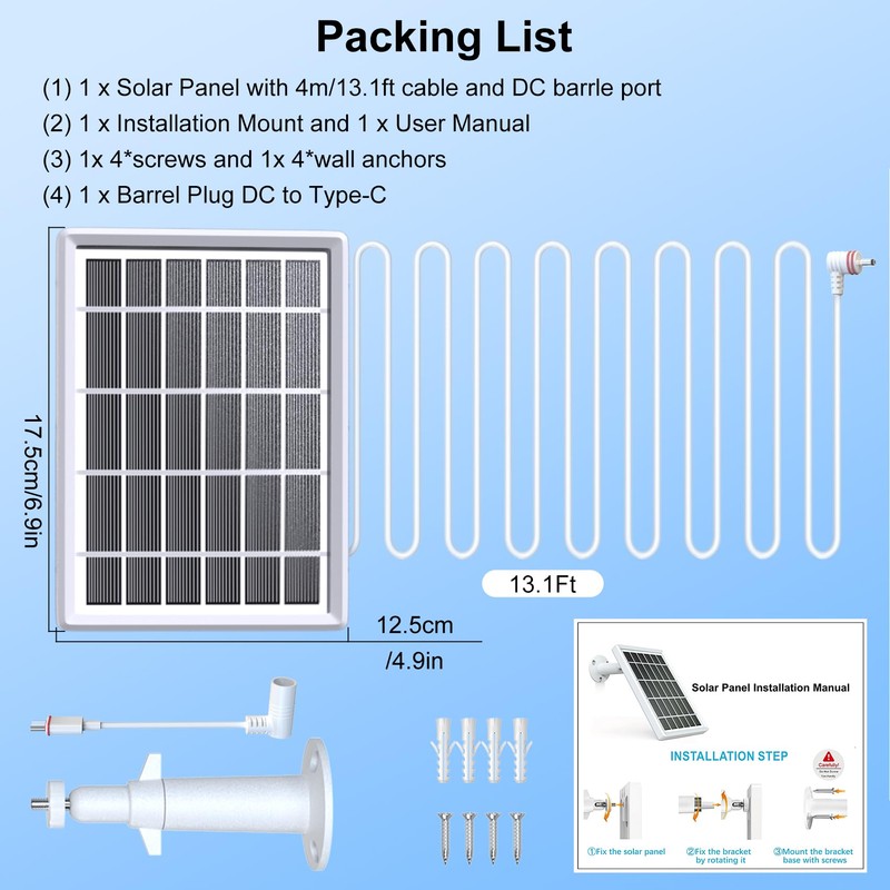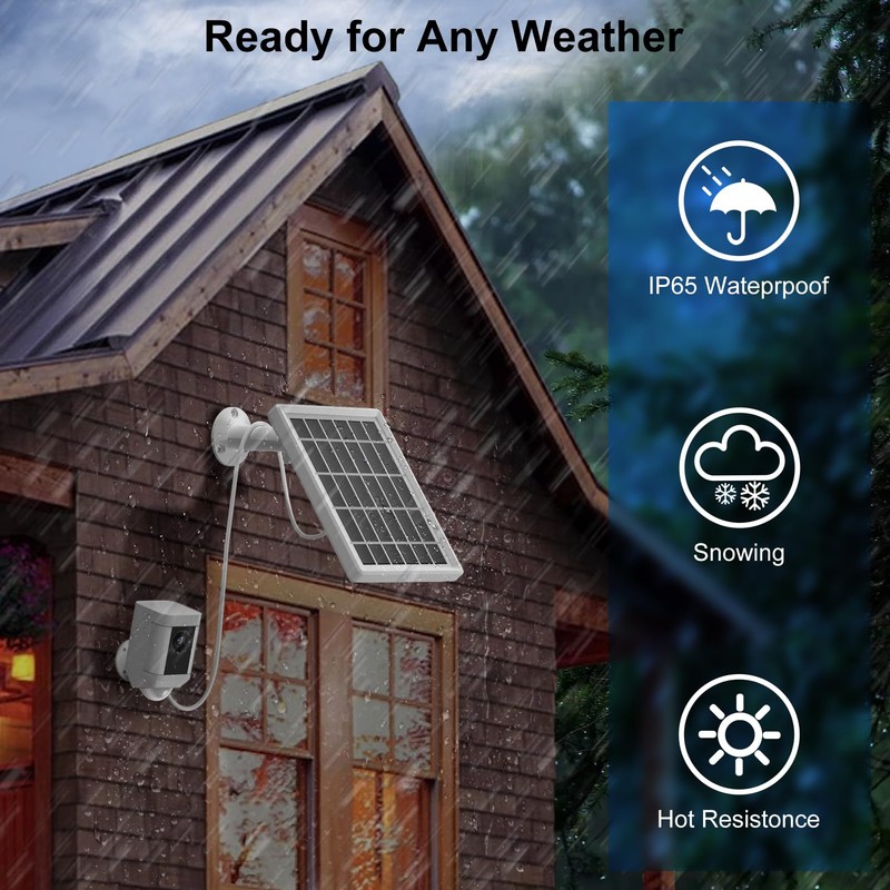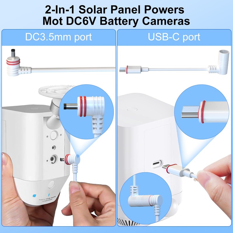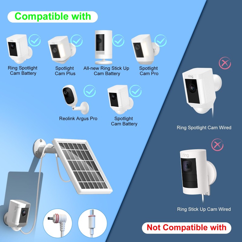 Solar Panel for Ring Camera, Solar Panel for Ring Spotlight Cam Plus/Pro/Battery and Ring Stick Up Cam Battery, 6V 3W Solar Panel with 13.1Ft Fast Charging Cable, USB-C and DC3.5mm Ports