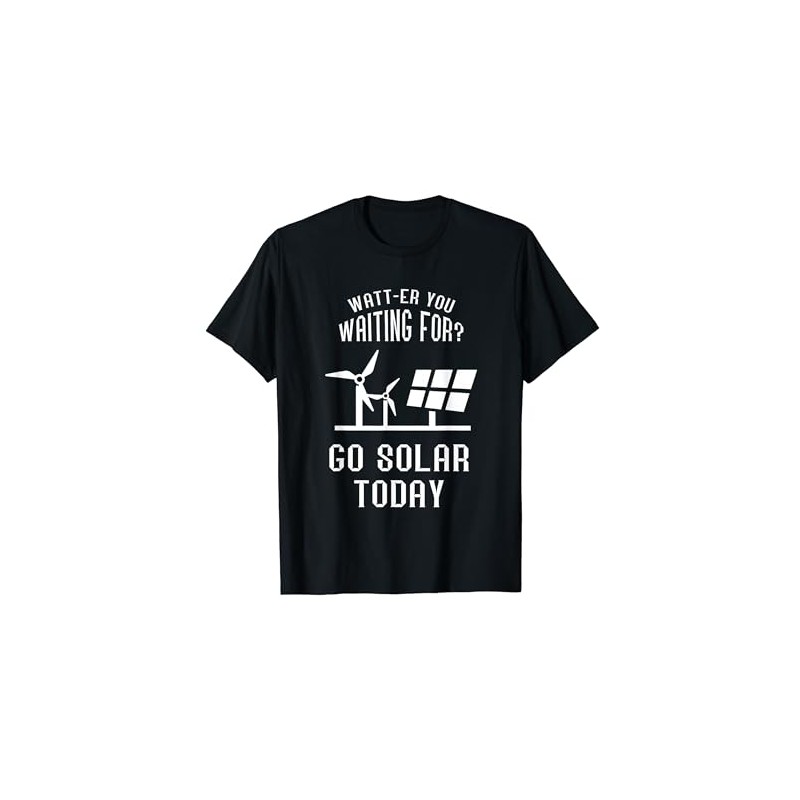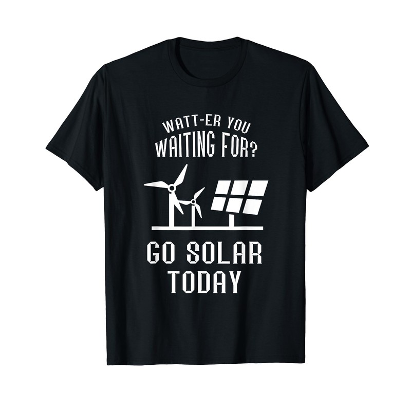 - This Novelty Graphic says "Watt-er You Waiting For? Go Solar Today" and shows a solar panel system. Awesome for electrical technicians, engineers, and solar power installers. Nice for people who is an advocate of renewable energy.