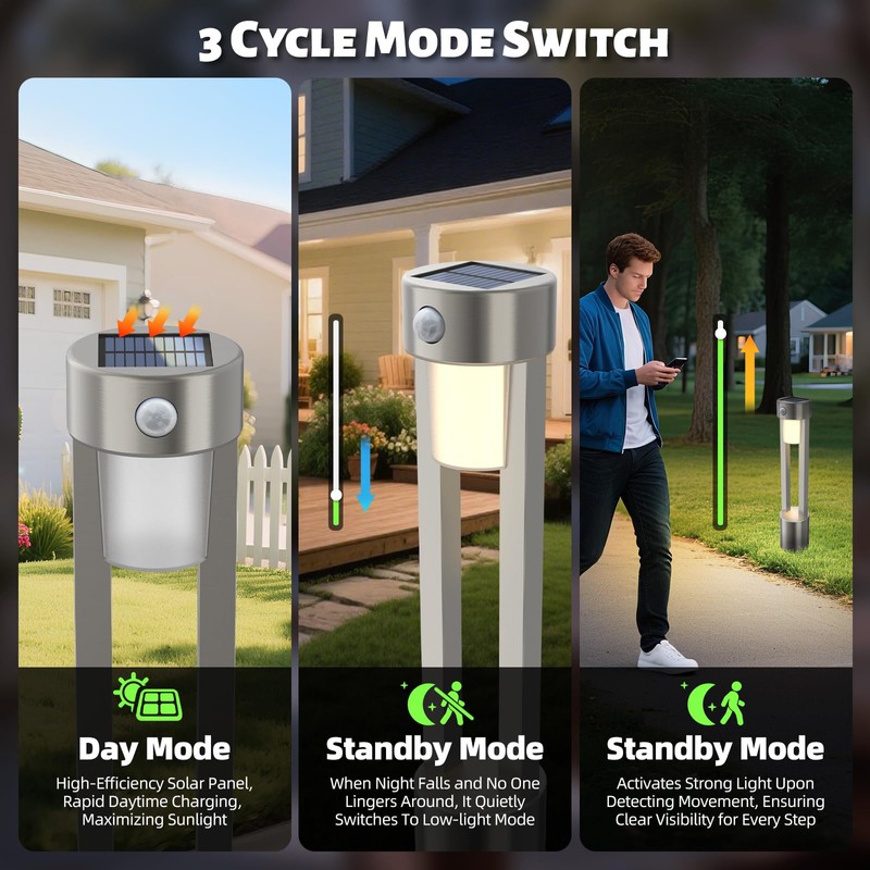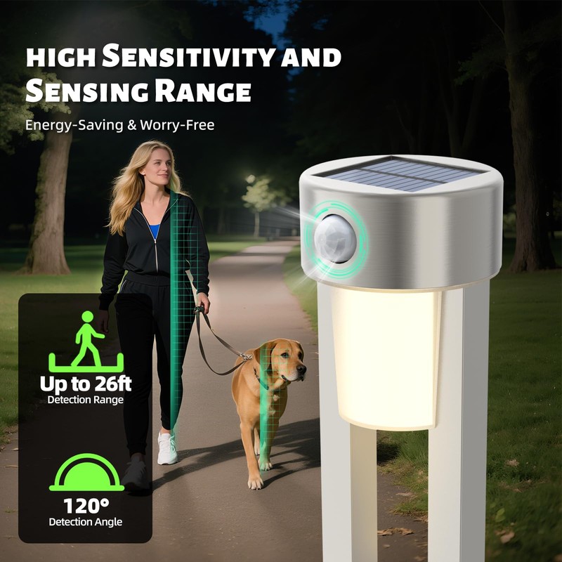 • Sensor Security Light- Advanced infrared detection activates 120° wide-angle security lighting instantly. With 100 lumens when people come and a 10 lumen standby mode, it saves energy compared to traditional pathway lights.