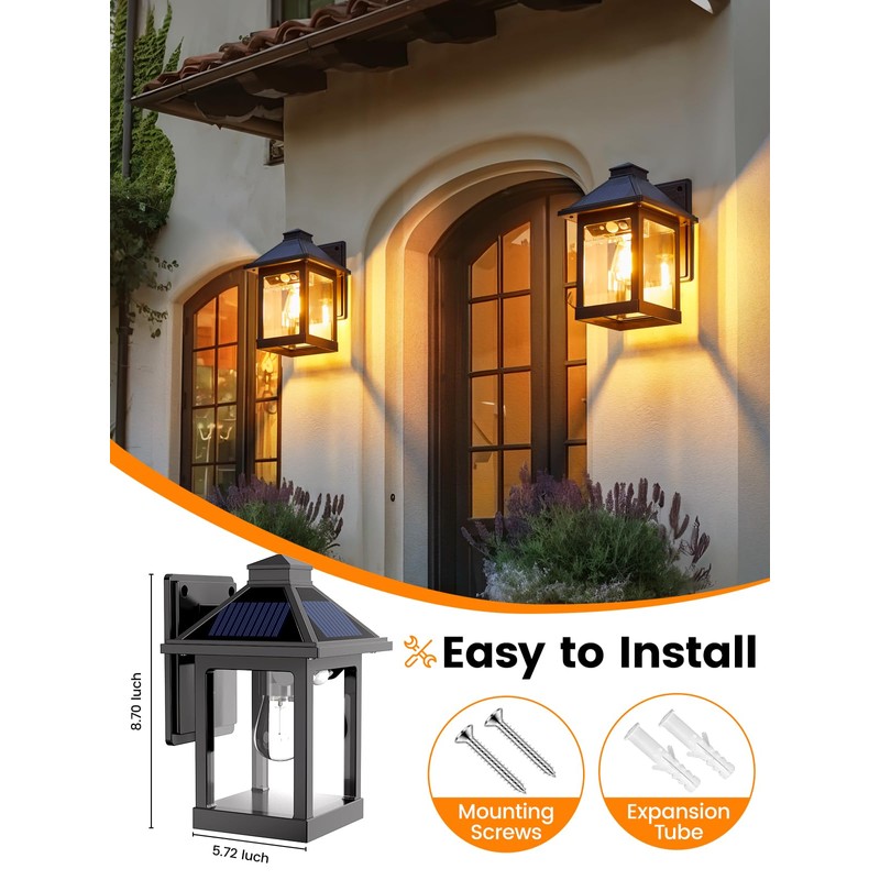 - 【Easy Installation & Wide Usage】:The installation process is an absolute breeze. The solar sconce lights outdoor package includes screws for quick mounting on porches, walls, or garages. The solar wall lights outdoor with classic design suits all architectures, be it modern or retro. These solar outdoor motion lights effortlessly blend in, adding elegance and character to your home. A few simple steps and it's up, transforming your outdoor space with style and practicality.