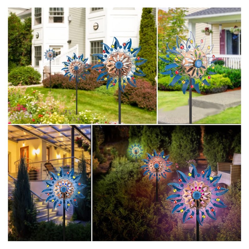 Solar Wind Spinner Retro Spinner, Waterproof Outdoor Metal Wind Sculpture for Patio, Lawn & Garden Decor