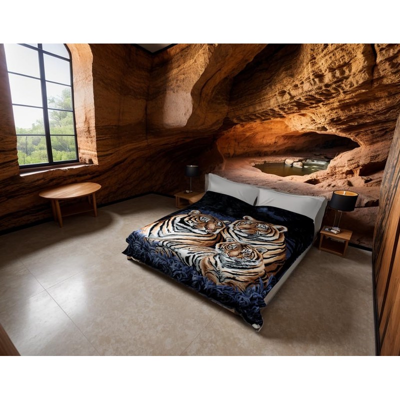 Solaron Super Thick Mink Blanket BM253 Queen 3 Tigers Blue