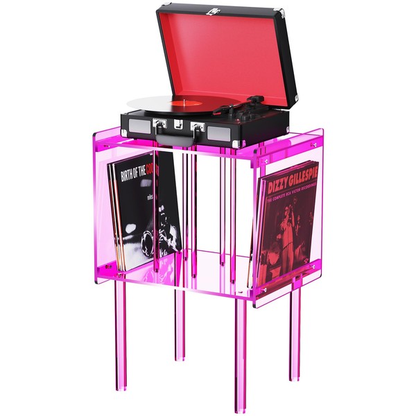 solaround Acrylic Record Player Stand, with Vinyl Storage, Clear Acrylic Side Table, Pink (Pink)