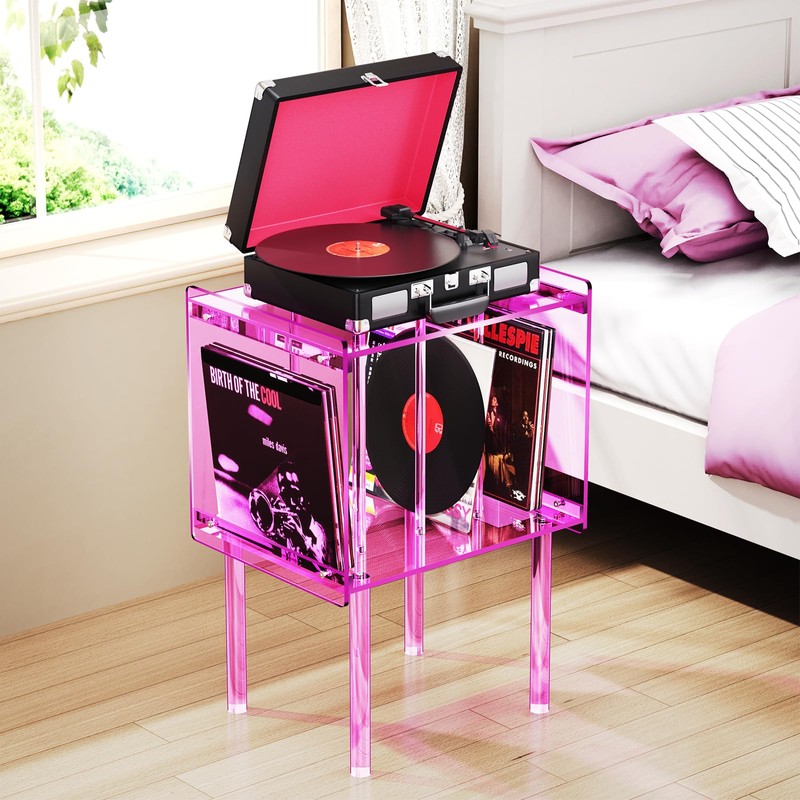 • Multifunctional acrylic table: Use it as a side table, record player stand, bedside table for your living room