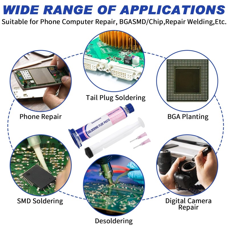 Ideal for a wide range of electronic soldering applications, this rosin flux is compatible with various metals, Suitable for Soldering PCB, SMD, SMT, Handwork, Phone, Home Appliance and Meters Repairing
