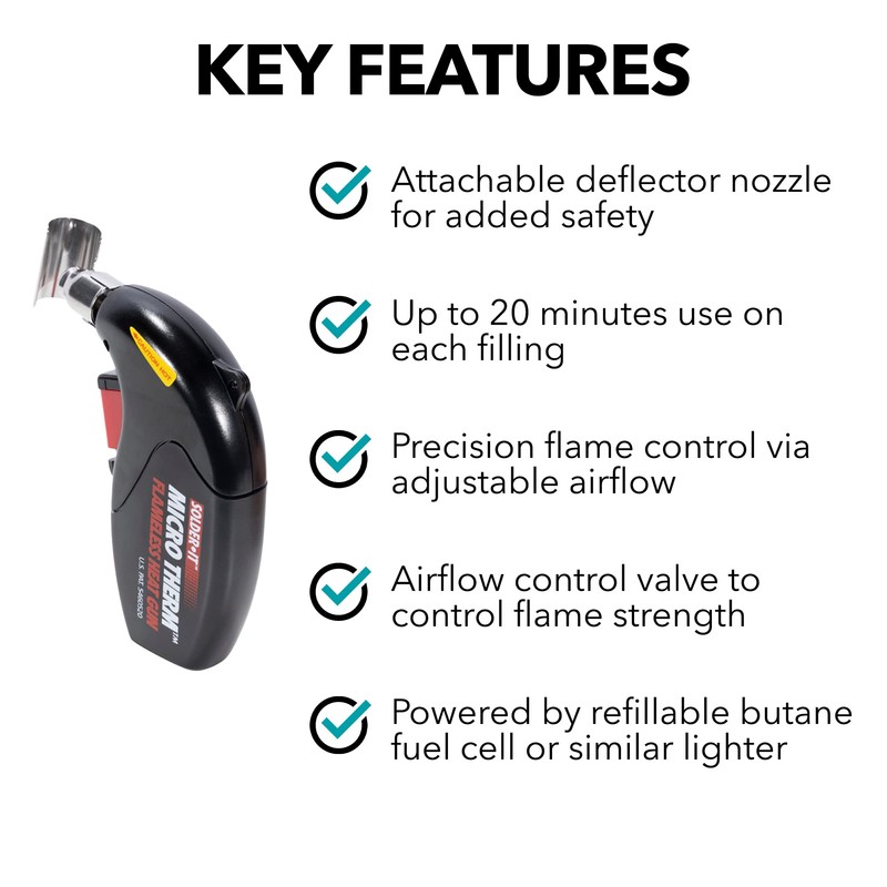 Solder-It Micro Therm Butane Heat Gun (MJ-600) | Flameless Mini Heat Gun with Detachable Heat Deflector | Piezo Electric Ignition and Butane Refill Tank | for Heat Shrink and PVC Bending