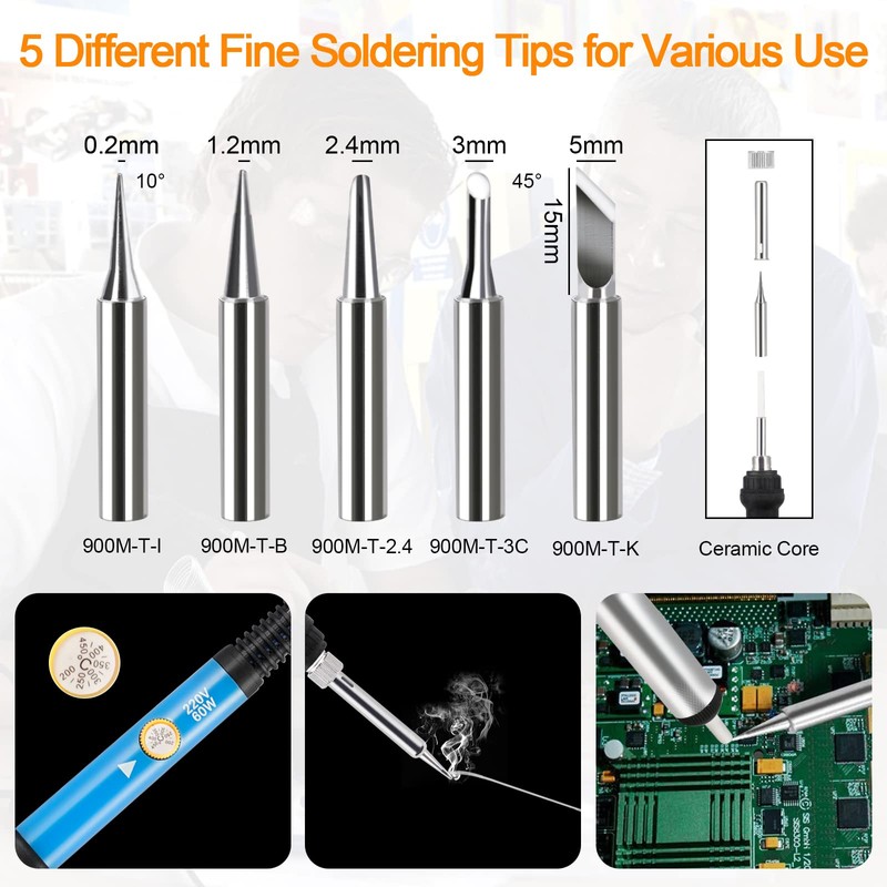 - 【15 in 1.Soldering Iron Kit】 Our soldering iron is combined according to different welding needs, including soldering iron, 5 different soldering iron heads, desoldering pump, soldering iron frame with sponge, soldering wire, soldering core, wire stripping knife, PU tool kit. 【Wide use】