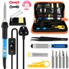 Soldering Iron Kit,60W Soldering-Iron Gun with Adjustable Temp 200-450°C and ON/Off Switch,5 Soldering Tips, Desoldering Pump, Solder Wire,2 in 1 Wire Stripper Cutter, Soldering Iron Stand, Tool Case