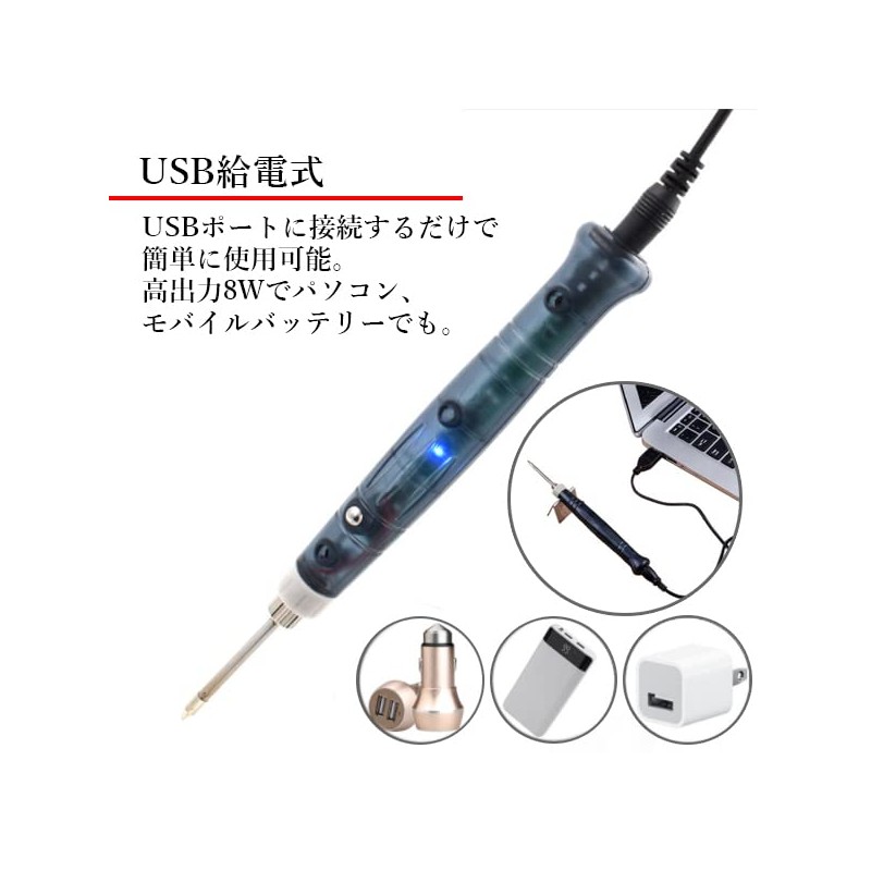- USB powered soldering iron that can be easily used by simply connecting it to a USB port