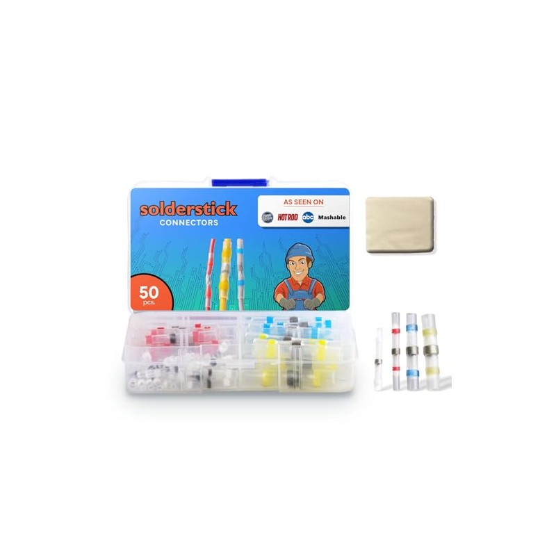 Introducing the Solderstick Waterproof Solder Seal Wire Connectors Kit – your solution for reliable and durable wire connections. This comprehensive heat shrink wire connectors kit includes 50 high-quality waterproof connectors for wiring in four different gauge sizes: 12-10, 16-14, 22-18, and 26-24 AWG. Perfect for a variety of applications, from automotive to marine, these marine connectors ensure a secure and insulated connection every time. Upgrade your wiring projects with this electrical wire connectors kit and experience the convenience and reliability of Solderstick.