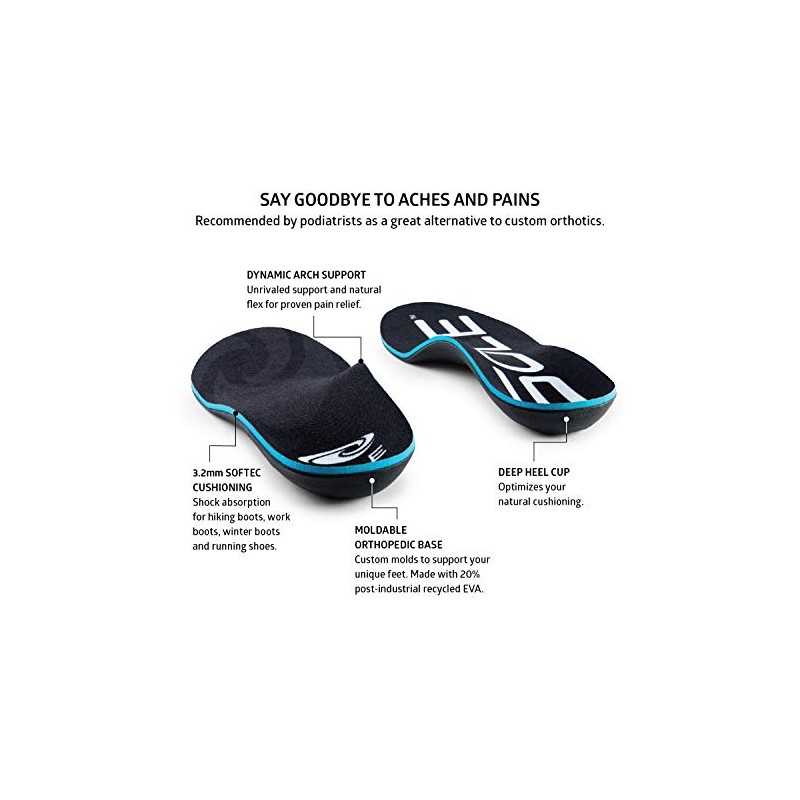 • Custom heat or wear moldable and clinically proven to reduce plantar fascia strain by 34 percent, aiding with plantar fasciitis pain relief