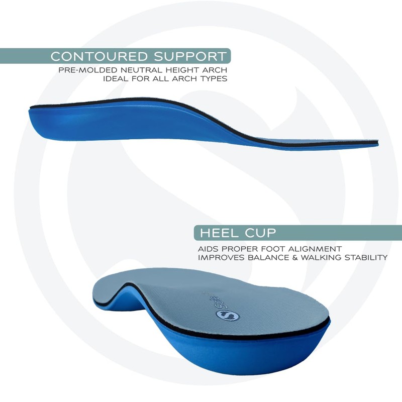- Full Length total foot support - Semi-Rigid arch support insole with pre-molded heel cradle for increased support and stability in your shoes providing balanced weight distribution for improved overall foot fuction, walking steps, and proper foot alignment to relieve discomforts and pains caused by pronation (flat feet), plantar fasciitis, metatarsalgia, ball of foot sensitivity, arthritis, achilles tendonitis, and other common foot issues.