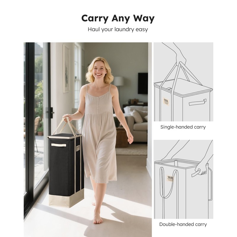 - 【Slim Laundry Basket】 Specially designed for tight spaces, this skinny laundry basket fits perfectly between your washer and dryer, in narrow closets, tiny bathrooms, or compact bedrooms—making the most of every inch in your home.