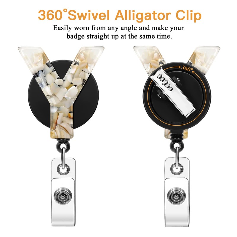 • 360° Rotating Alligator Clip - The 360° rotating crocodile clip can be easily carried from any angle and makes your badge up at the same time. So you can hold your collar, belt or trousers comfortably, you don't have to worry about your badge falling off