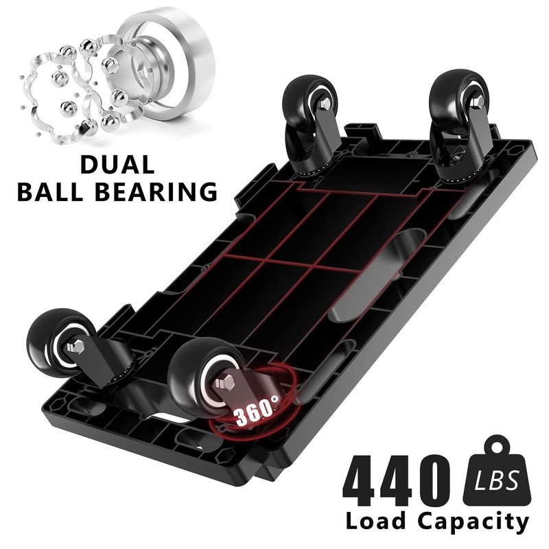 SOLEJAZZ Moving Furniture Dolly Connectable, 440 LBS Capacity Piano Dolly, Heavy Duty 4 Wheel Cart for Heavy Furniture, Black, 1 Pack