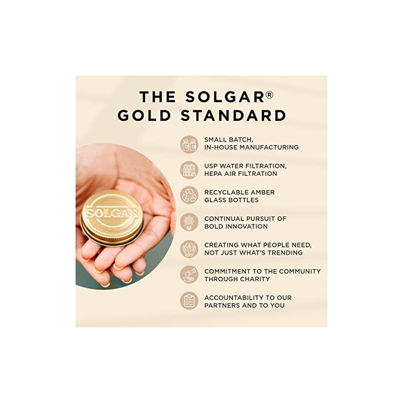 - ✓GOLD STANDARD - All Solgar products meet our industry recognized “Gold Standard” for excellence, made using naturally sourced ingredients and innovating since 1947