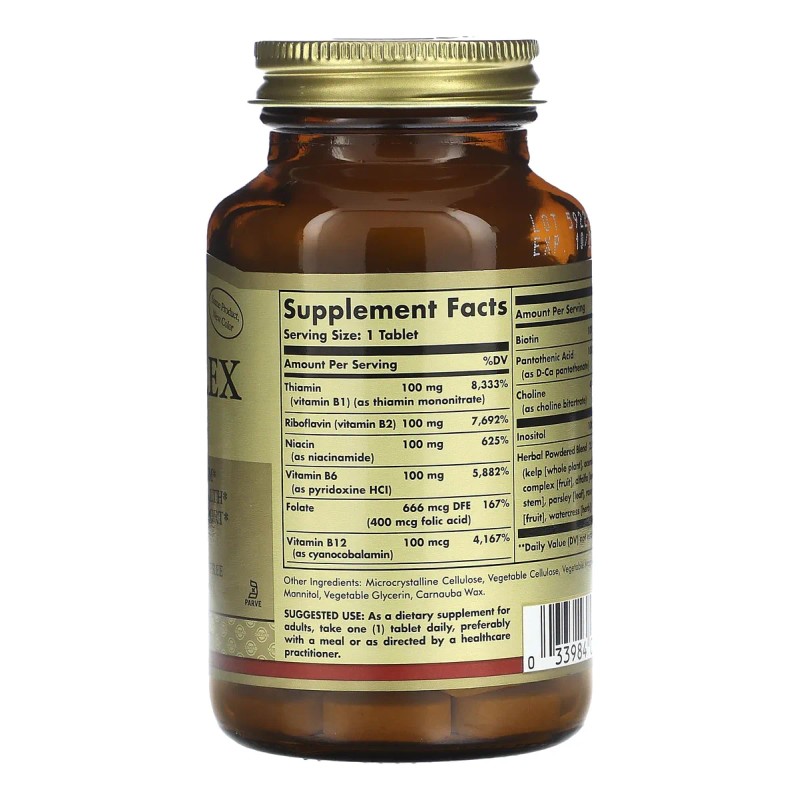 Solgar B-complex 100 Tabletas Vegano Sin Gluten