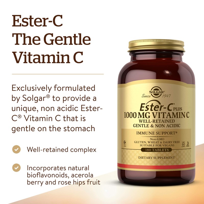 Solgar Ester-C 1000mg Vitamin C Tablets - Gentle, Non-Acidic, Antioxidant Support - 180 Vegan Tablets
