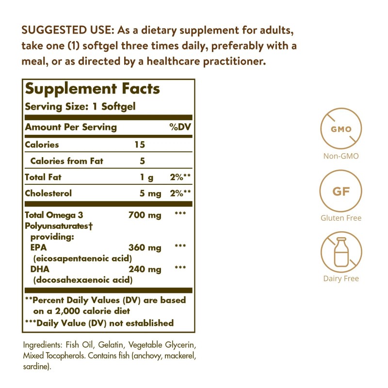 Solgar Kosher Omega-3 740 mg, 50 Softgels - Cardiovascular, Joint & Cellular Health - Omega-3 Fatty Acids EPA & DHA - Non-GMO, Gluten Free, Dairy Free, Kosher - 50 Servings