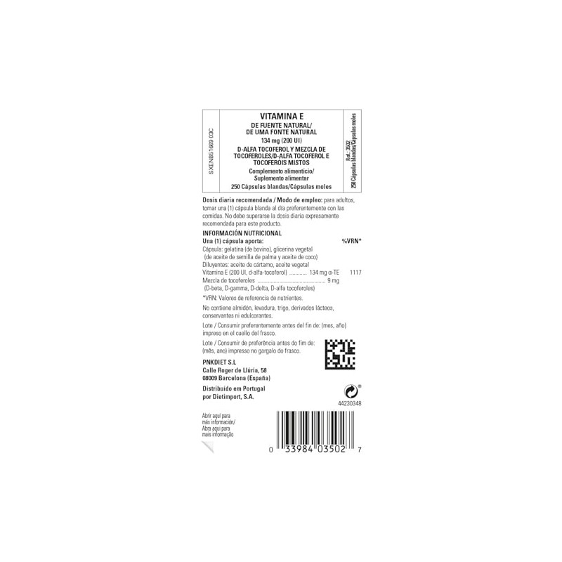 Product DescriptionNatural Source Vitamin E 134 mg (200 IU), comes in softgel form to support the absorption of this fat-soluble nutrient. This ensures your body gets the support it needs to protect the cells from oxidative stress caused by free radicals. Free radicals are unstable molecules that can damage the cells in your body and are associated with premature aging. It also contains natural Vitamin E (d-alpha tocopherol) which in studies has shown to be 1.3 times more bioavailable than synthetic forms**.Alpha Tocopherol is the term used to describe Vitamin E, a fat-soluble vitamin and can naturally be found in nuts, nut oils, olive oil, green leafy vegetables and avocados. It is an essential nutrient as it is the primary antioxidant which contributes to the protection of cells from oxidative stress and damage caused by free radicals. Free radicals are formed when we convert our food into energy, or when we are exposed to air pollution and ultraviolet light from the sun. In addition, the body needs Vitamin E to support the immune system. Eating a healthy and balanced diet should bring you to sufficient levels of Vitamin E but unfortunately the diets of most people do not reach this.IngredientsEach softgel provides: Sofigel Capsule Shell: gelatin (from bovine), vegetable glycerin (from palm kernel oil and coconut oil) Vitamin E ..... 134 mg aTE 1117 (200 IU as d-alpha tocopherol) Safflower Oil Mixed tocopherols ........ 9 mg (d-beta, d-gamma, d-delta, d-alpha tocopherols)DirectionsAs a food supplement for adults, one (1) softgel daily, preferably at mealtime, or as directed by a healthcare practitioner. Do not exceed directions for use. Storage Information: Store at room temperatureSafety WarningIf you are pregnant, nursing, taking any medications, planning any medical or surgical procedure or have any medical condition, please consult your healthcare practitioner before taking this product. Food Supplements should not be used as a substitute for a varied diet. Store out of the reach of young children.Box ContainsGlass Jar containing Solgar Food SupplementManufacturer Contact InformationSolgar UK, Beggars Lane, Aldbury, Tring, Herts HP23 5PT