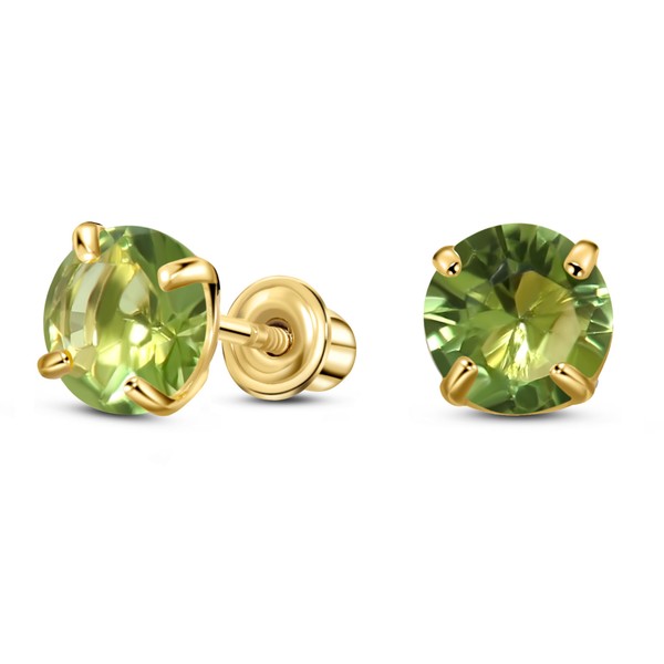 Solid 14K Gold Round Solitaire Simulated-Birthstone Minimalist Stud Earring with Comfort Screw Backing, 6mm, Yellow Gold, Cubic Zirconia