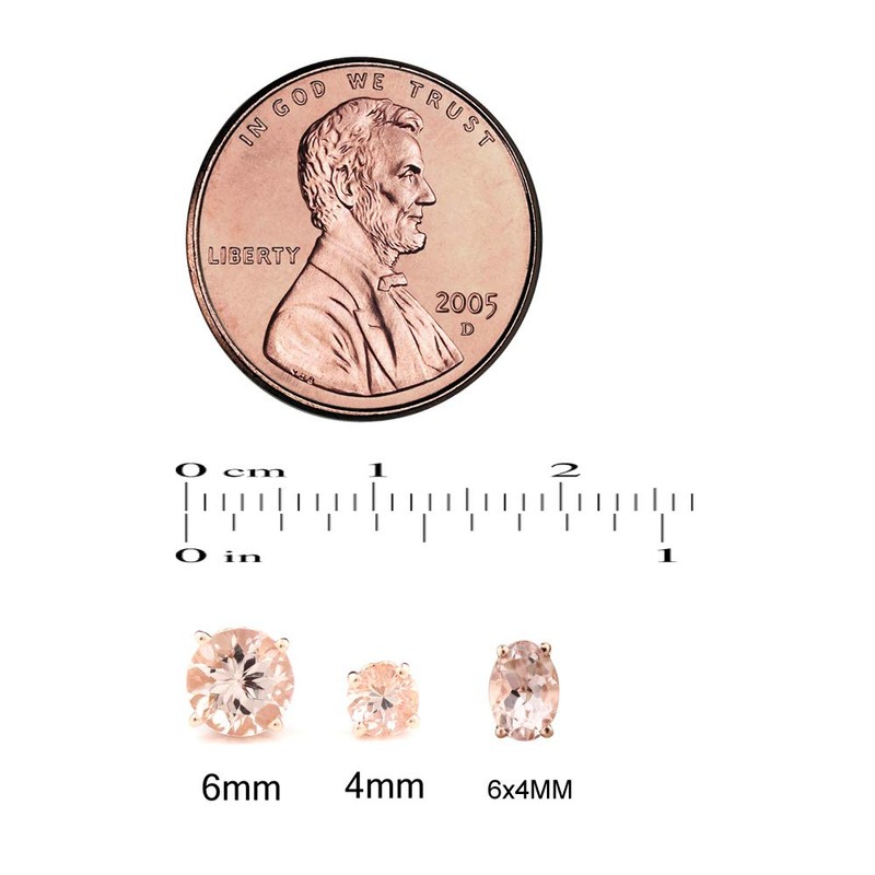 Solid 14k Rose Gold Morganite Fleur-de-lis Stud Earrings (6x4mm Oval)