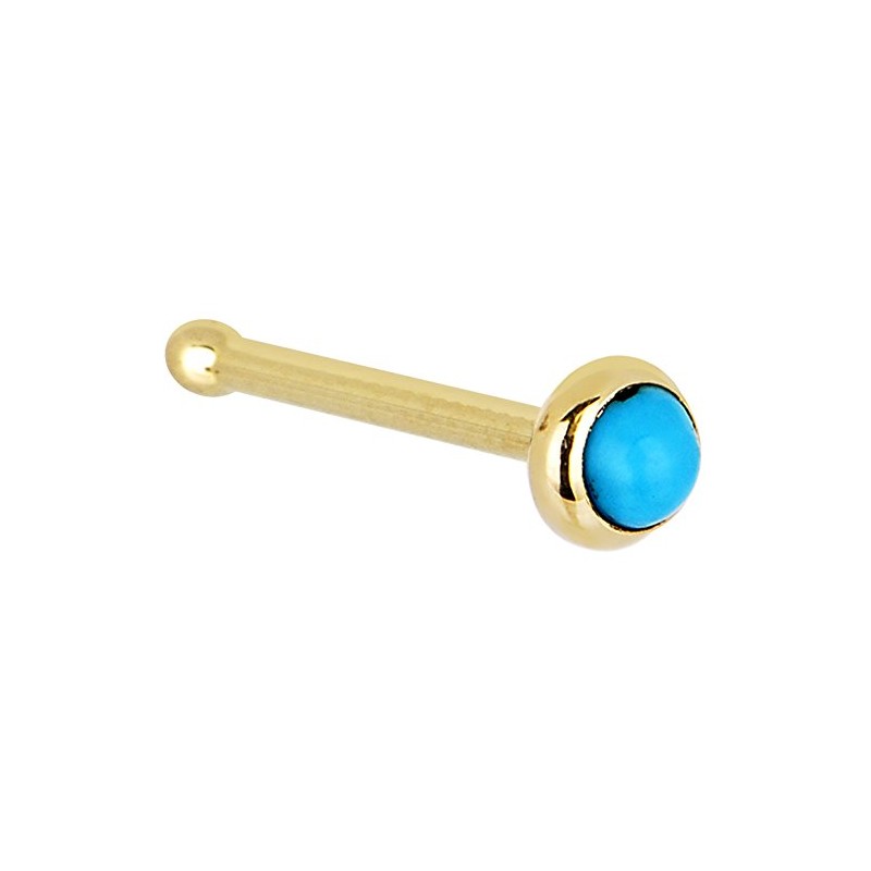 Solid 14k Yellow Gold 2mm Turquoise Nose Stud Bone 20 Gauge 1/4"