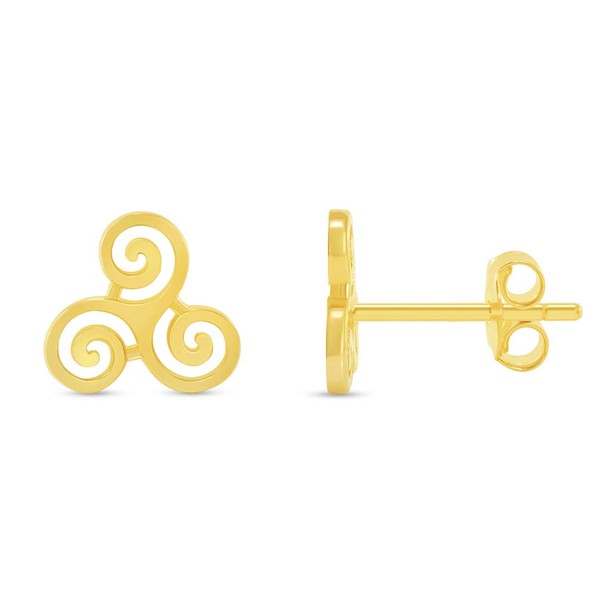 Solid 14k Yellow Gold Celtic Triple Spiral Triskelion Stud Earrings with Screw Back, 8.5mm x 9mm