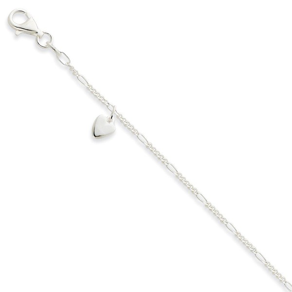 - Your satisfaction is our top priority at Sonia Jewels - Solid 925 Sterling Silver 10inch Polished Dangling Love Hearts on Figaro Link Anklet Bracelet - with Secure Lobster Lock Clasp 10"