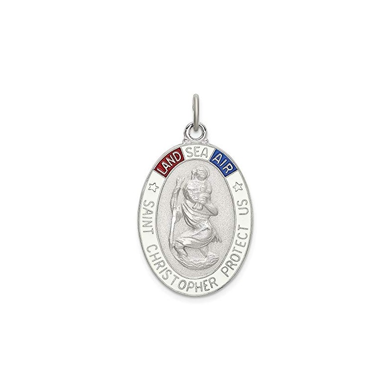 - Your satisfaction is our top priority at Sonia Jewels - Solid 925 Sterling Silver / / Diamond-Cut Enamel St Christopher Brushed Matte Finish Pendant Charm Medal - 37mm x 20mm