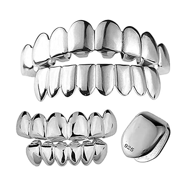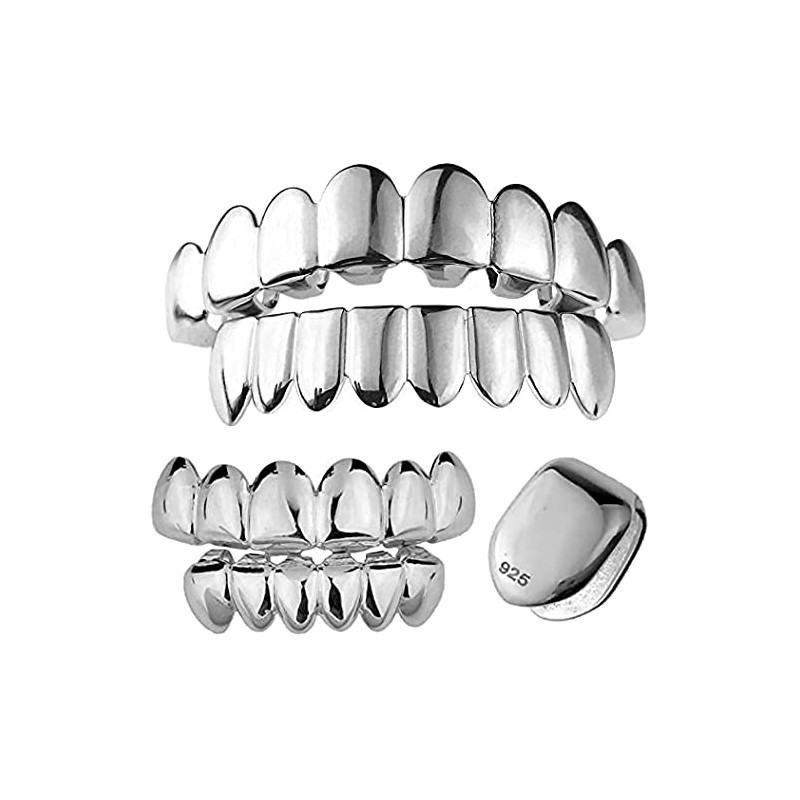 Solid 925 Sterling Silver Grillz - BEST 6 Or 8 Tooth Or Single Caps/Top & Bottom Grills For Teeth - Real Solid Silver Fronts Don't Change Color (Single Tooth)