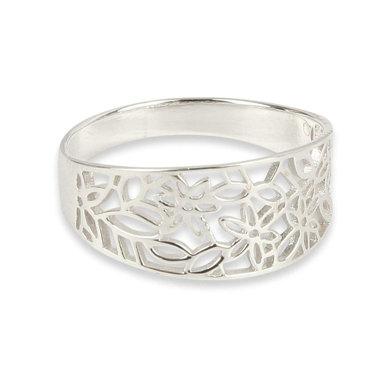 Solid 925 Sterling Silver Leaf Filigree Pattern ring in sizes G-Z comes Gift Boxed (N)