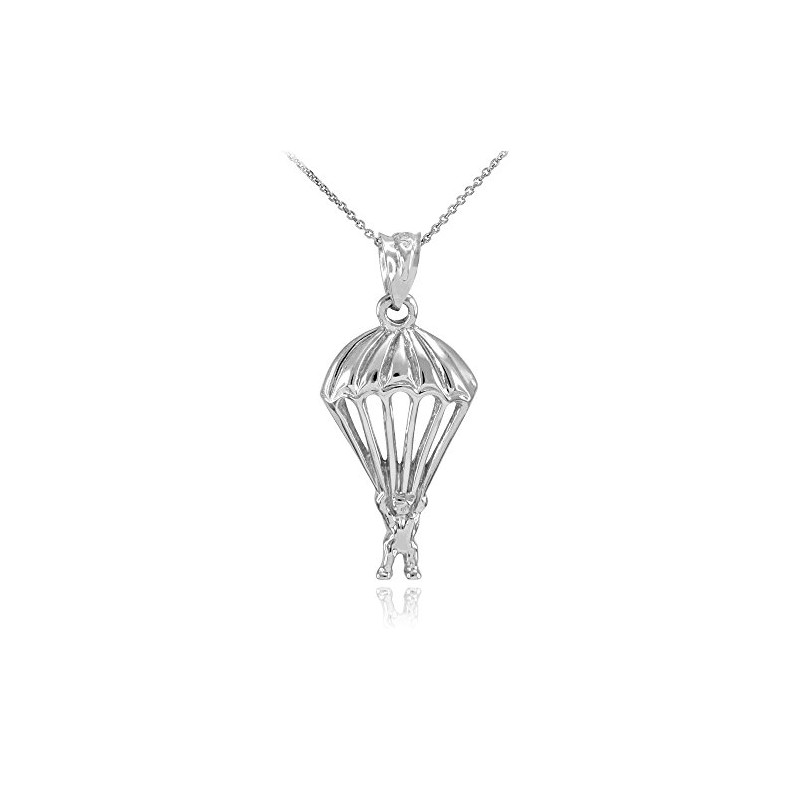 Solid 925 Sterling Silver Skydiving Parachuter Pendant Necklace, 20"