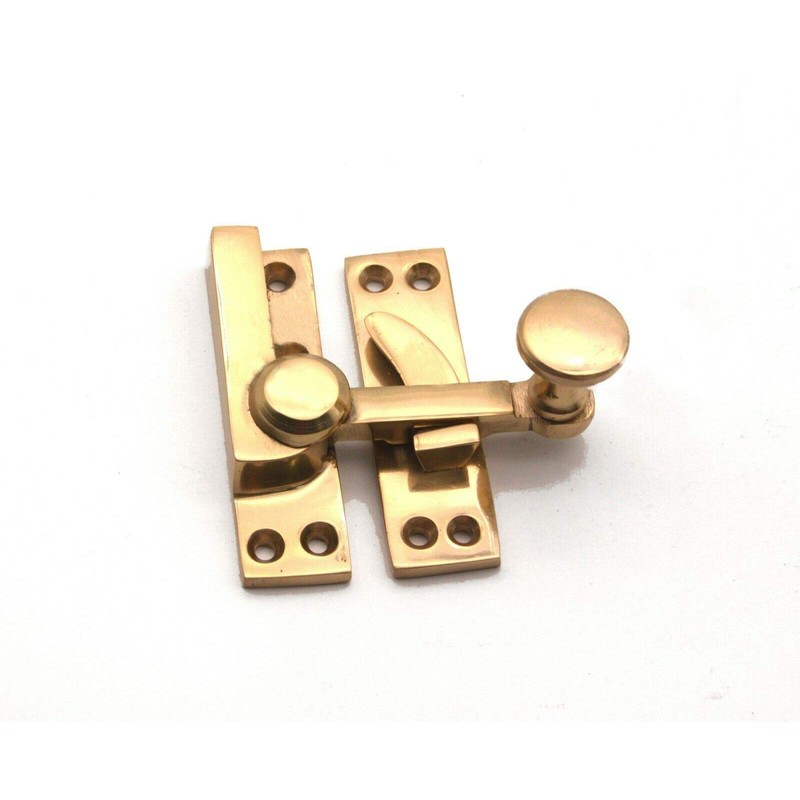 Solid Brass Victorian Sliding Sash Window Catch Quadrant Arm Latch Fastener Brass & Chrome (Polished Brass)