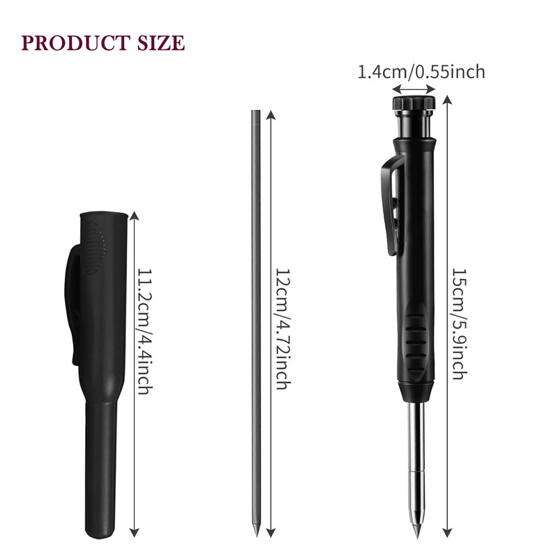 - Built-In Sharpener: Each of our Mechanical Carpenter Pencils comes with a convenient sharpener integrated into the top, ensuring that your pencil remains sharp without the hassle of carrying an additional tool, thereby enhancing your workflow efficiency.
