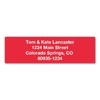 - Self-adhesive labels are dramatically personalized on a Red background with white lettering.