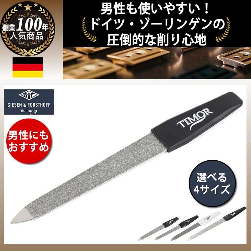 [Solingen, Germany, 100 Years Establishment GIESEN & FORSTHOFF] [Easy to Use] [Easy to Use:Super Sapphire-Treated Nail File That Can Be Sharpened] Quickly Clean Nails and Prevents Burrs on Clothes, Double Sided, S Size (3.5 inches (9 cm), Men's Recommend