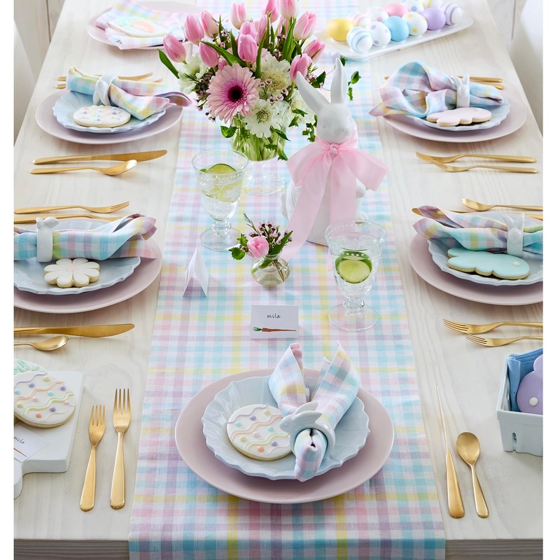 - Size - 14 x 48 Inch Small Table Runner | 0.5" Gingham Check; Color - Pastel Gingham Check Table Runner | (Sizes are standard but they may vary slightly due to care taken to provide a seamless look and invisible stitching)